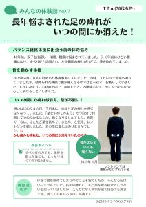 NO.7 長年悩まされた足の痺れが、いつの間にか消えた!